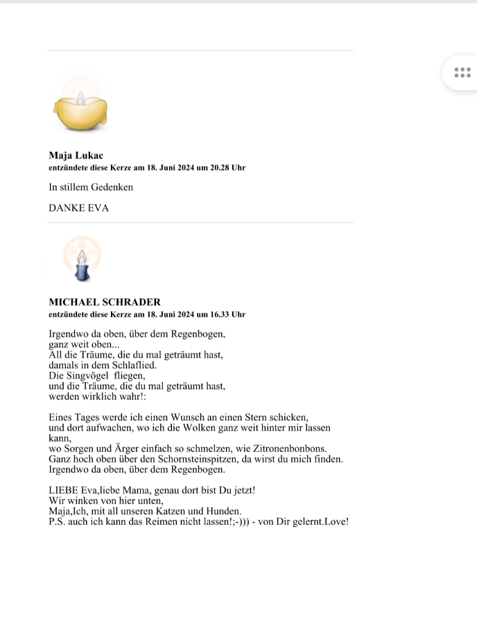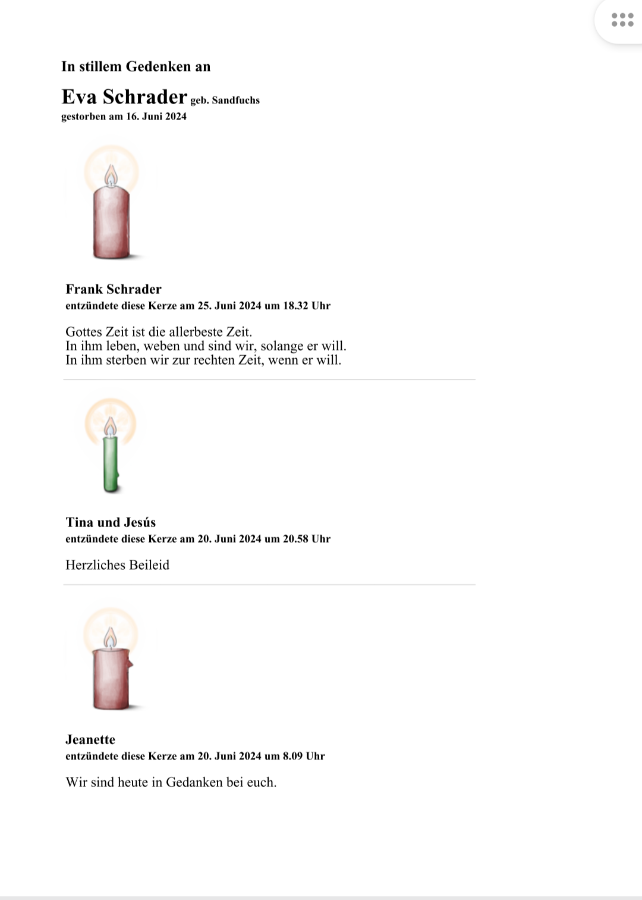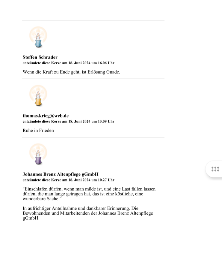 Sprechen Sie im Kondolenzbuch den Hinterbliebenen Ihr Beileid aus und teilen Sie persönliche Gedanken und Erinnerungen mit anderen.