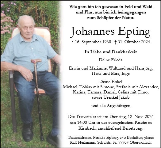 geboren am 16. September 1930 in Kirnbach