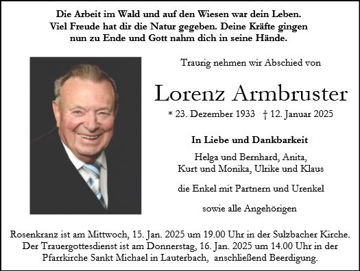 gestorben am 12. Januar 2025 in Lauterbach-Sulzbach