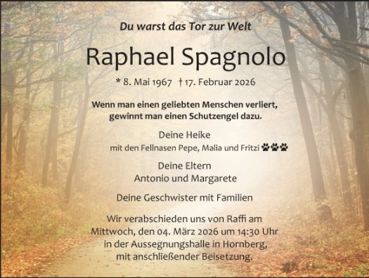 wir wünschen Ihnen von Herzen viel Kraft, dass Sie Menschen um sich haben, die Ihnen in dieser schweren Zeit beistehen und Halt geben. Zusätzlich können Sie auf dieser Gedenkseite Erinnerungen teilen und so das Andenken gemeinsam wachhalten.