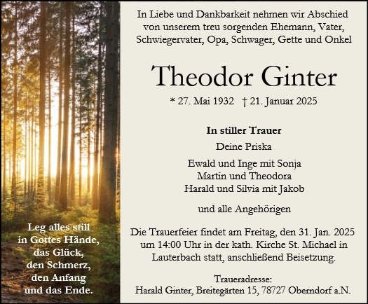 wir wünschen Ihnen von Herzen viel Kraft, dass Sie Menschen um sich haben, die Ihnen in dieser schweren Zeit beistehen und Halt geben. Zusätzlich können Sie auf dieser Gedenkseite Erinnerungen teilen und so das Andenken gemeinsam wachhalten.